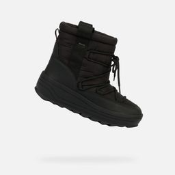 Czarne damskie obuwie za kostkę Geox Milleiny B ABX z wodoodporną technologią. Pikowane wzory na cholewce łączą się z praktycznym systemem sznurowania, tworząc obuwie na chłodniejsze dni. Gruba podeszwa z teksturowanym bieżnikiem zapewnia stabilność podczas chodzenia po mokrych chodnikach i śliskich powierzchniach.
