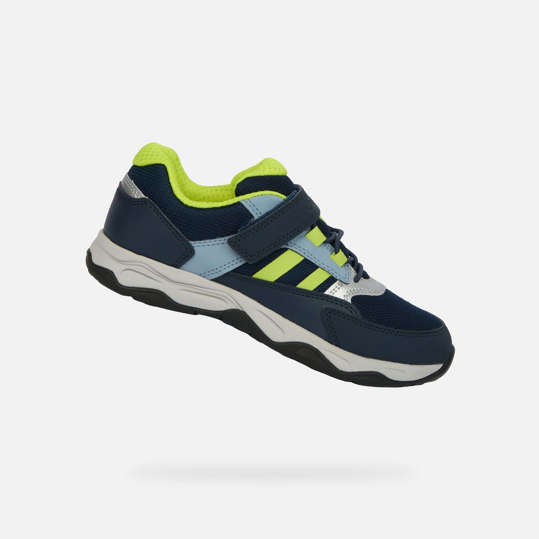 Wyrafinowane połączenie ciemnego błękitu z jasno niebieskimi i żółtymi akcentami nadaje tenisówkom nowoczesny wygląd, który idealnie komponuje się z codzienną odzieżą Twojego małego odkrywcy.